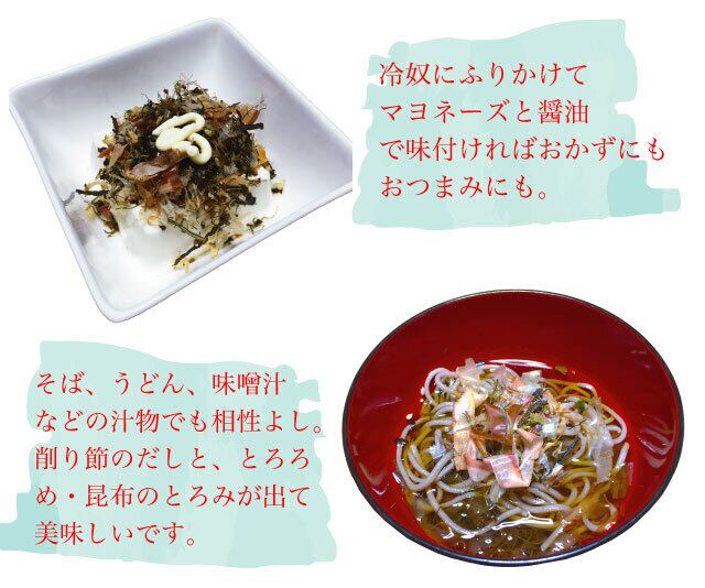 だし職人が選んだ静岡県産の削り節3種類と国産の昆布、海藻、とろろめを主に